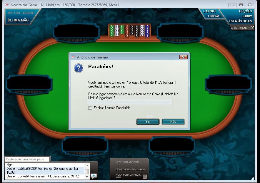 Mas tenho feitos mais itms na Full Tilt e joguei também um torneio Rush que é como o Zoom da PS e fiz uma ft ...